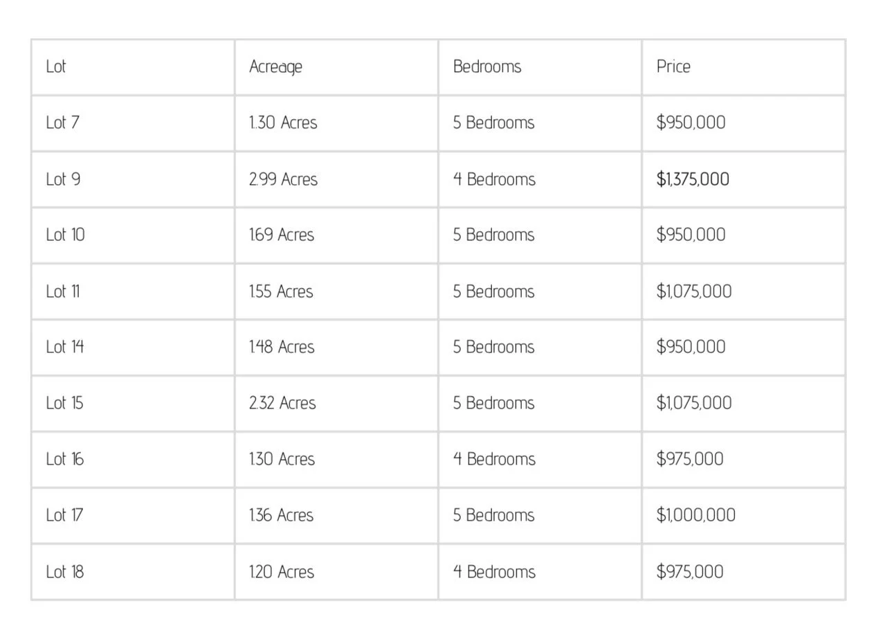 Our selected lots include: 7, 9 (pending), 10, 11, 14, 15 (pending), 16, 17, and 18.
